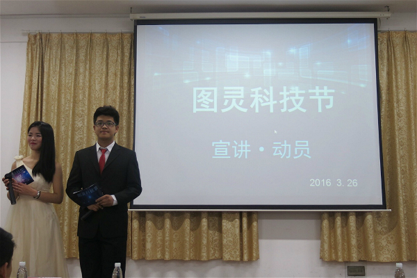 3月26日晚19点,公司第十三届“图灵”科技节开幕式在逸夫楼108室举行。出席本次开幕式的有校科协主席团成员、院科协成员、各公司科协科技部负责人等。开幕式由公司2015级员工吴波和徐东亮主持。