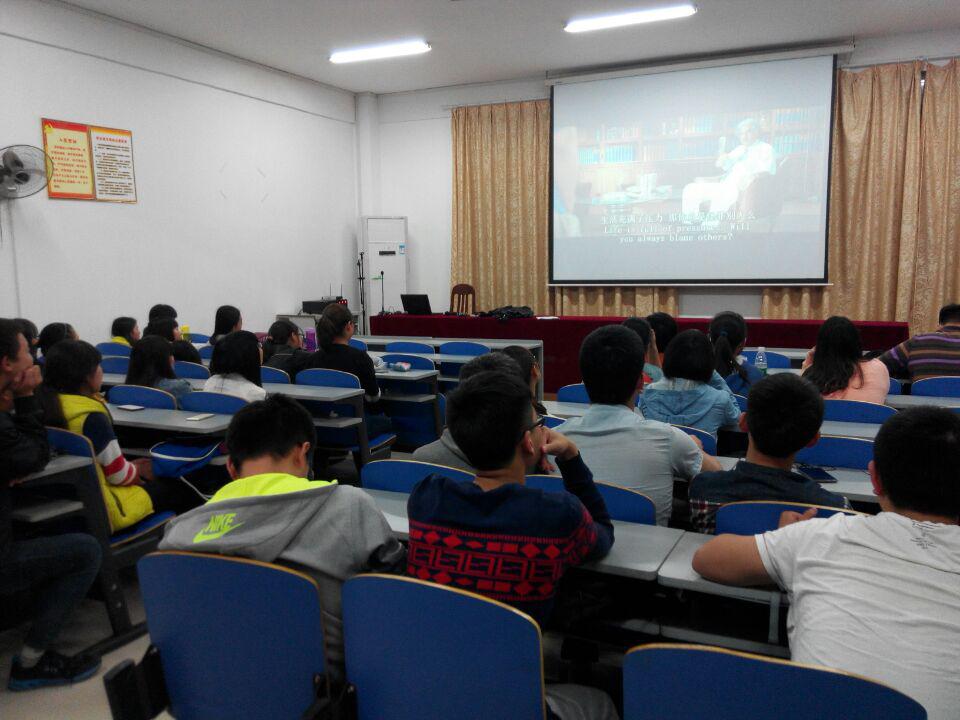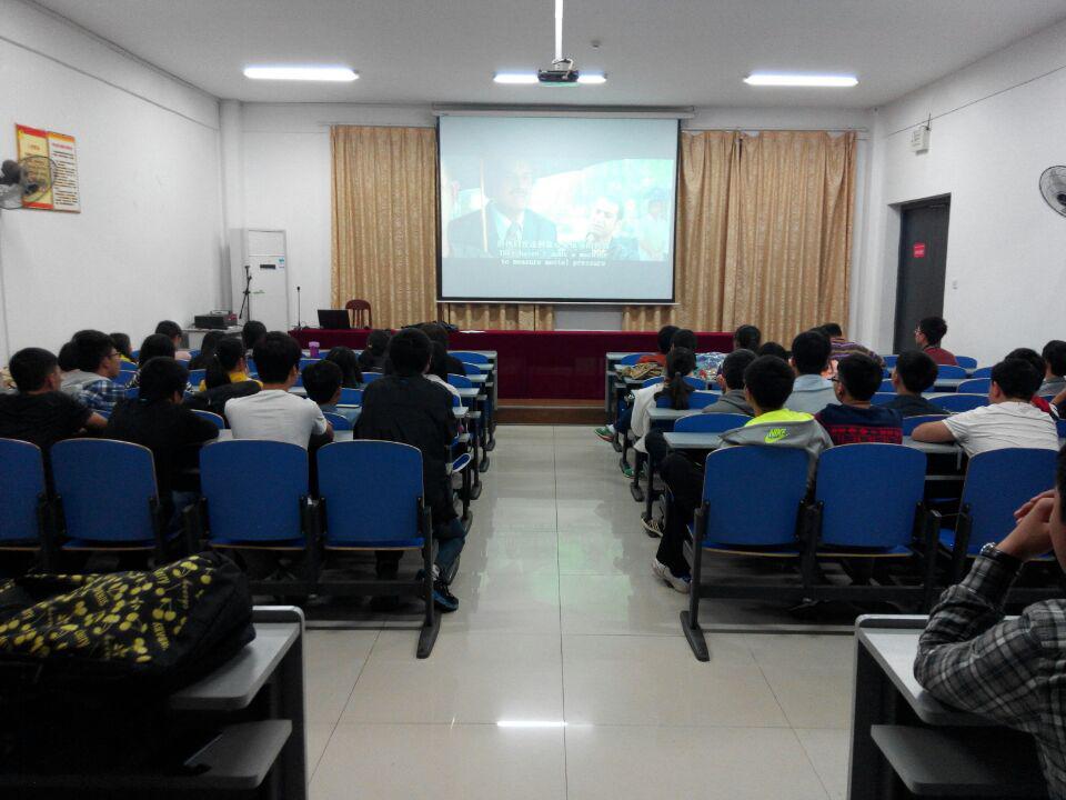 计算机公司心理健康部于2015年4月24日晚上7点在逸夫楼108开展心理健康月之电影欣赏活动。参与人员为网络和信安专业六个班。在主持人说明活动介绍及要求之后,辅导员老师做了相应的致辞。观赏影片为《三傻大闹宝莱坞》,现场气氛活跃。影片中的三个伙伴的感情经历和人生经历,与本次心理健康月主题“感恩你我,生命同行”相契合,引发观众思考自己与死党们的点点滴滴,同时也带来了如何学习、勇于追求自己喜欢的东西等一系列感悟。