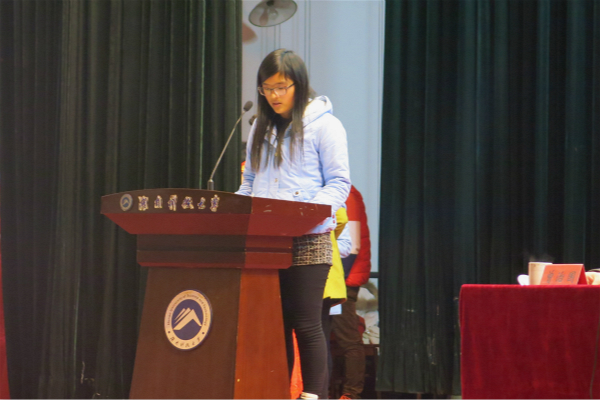 大会伊始,全体起立奏唱国歌,表彰大会在庄严的国歌声中拉开帷幕。接着,公司党委书记万启常宣读关于表彰2014-2015学年先进集体和个人决定。随后,优秀员工代表、国家奖学金获得者曹慧琳同学上台演讲,她讲到“荣誉桂冠往往是荆棘编就,成功的道路往往有汗水筑成”,并倡导大家端正态度,不怕困难,用激情点燃青春,用知识照亮梦想。
