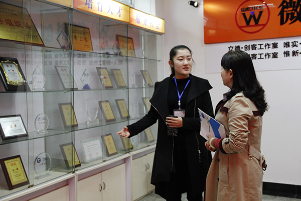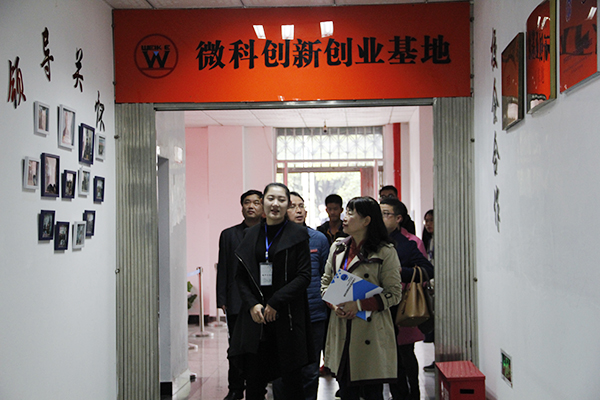 检查期间,专家先后走访了朝阳党建办公室、润梦空间心理成长辅导室,员工和老师的办公室及员工第二课堂展示长廊等。其中,重点参观了微科创新创业基地。在邢亚楠的引导下,参观了以校训为特色命名的“唯实”“惟新”“至诚”“致志”以及“立德”工作室,了解了多个员工创新创业团队以及员工竞赛和项目取得的成果。