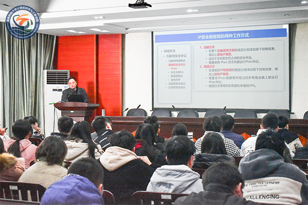 在提问环节中,有同学就银行加密技术向符开耀老师进行提问,就此问题,符开耀老师细心地解答相关问题并详细介绍了有关局域网与专线等方面的知识。整个环节师生互动融洽,课堂氛围活跃。