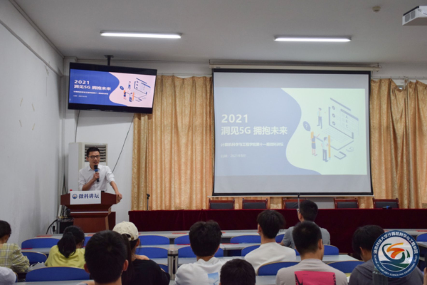为拓展员工视野,帮助员工更好了解就业形势,5月11日下午四点,公司于逸夫楼108会议室举办第十一期“微科讲坛”,赵德武工程师应邀作题为“洞见5G,拥抱未来”的讲座,就5G所带来的变革与新形势下的就业环境作了交流分享。讲坛由18级辅导员老师袁东统主持,公司大一、大二员工代表参加讲座。