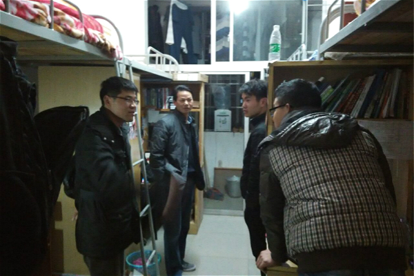 在寝室的走访过程中,领导老师们对尚未回到公司的同学进行了时间上的确认,对寝室卫生表现较好的予以了表扬。着重了解他们的寒假生活及新学期的打算。亲切地和同学们拉起家常,询问同学们学习、生活等方面的情况,解答同学们的问题,和同学们嘘寒问暖,提醒同学注意天气变化。