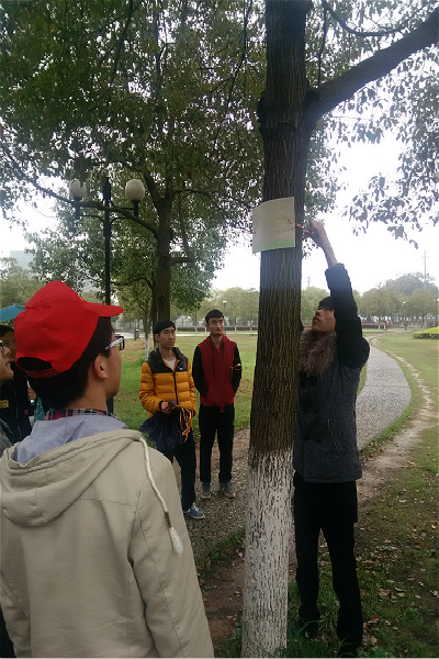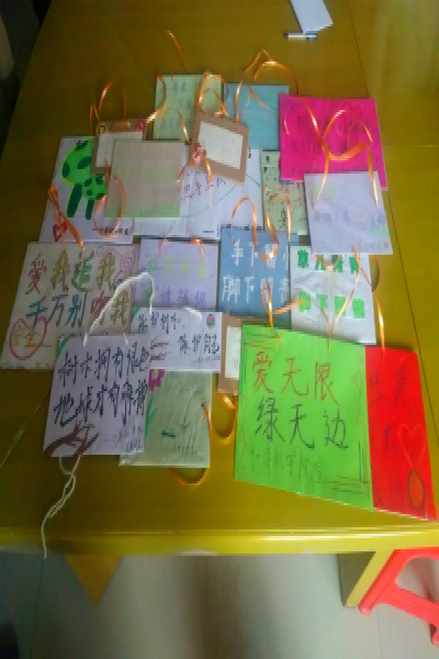志愿团全体成员自己动手制作标语牌“枝头点点绿,谁忍手上摘”,“虚线、实线,都是生命线”等。并在志愿团团长毛健芳的安排下,分两队于电信路口、北校门口、美食广场及五教坡顶等各个标志性路口安置标语牌。