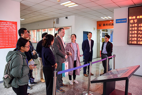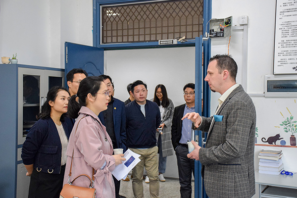 4月22日上午9点,英国创新创业教育者学会主席Jon Powell一行莅临公司微科基地,在公司招就处处长蒋利平、副处长李友桥、指导科科长何佳振,国际交流处老师杨慧以及公司党委副书记周筱芬,辅导员老师苏俊铭、刘田的陪同下,视察调研了微科基地的发展及目前的管理情况。