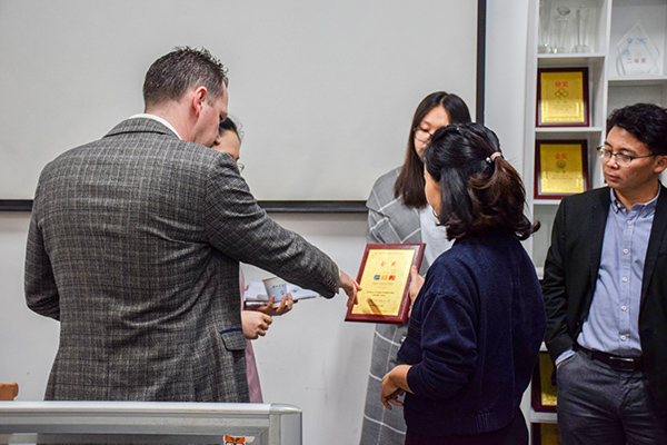 在参观完“惟新、至诚、立德、致志”四个创客工作室后,Jon Powell对微科基地创业研发团队有了进一步的了解,并对正在努力攻克难题的团队表示赞许。同时,在了解到微科基地科技竞赛以及创新创业成果后,Jon Powell对公司所取成就给予了充分肯定。最后,Jon Powell一行在微科基地前合影留念。至此本次参观交流圆满结束。