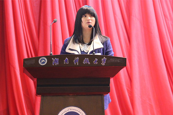 校十佳老员工、2012级计算机科学与技术专业的郭白露作为优秀员工代表进行了典型发言。她讲述了自己近三年的老员工活与感悟,并分享了“目标+坚持+尽善尽美=更上一层楼”的等式学习技巧。她与在座同学共勉:利用大学时光,努力提高自身综合竞争力。