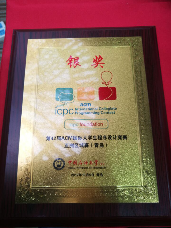 11月4日至5日,第42届ACM国际老员工程序设计竞赛亚洲区域赛(青岛)在中国石油大学(华东)体育馆举行。本次竞赛于5日上午9时正式开始,14时结束,经过5个小时的激烈角逐,公司由肖超群、赵志轩、唐志强3名同学组成的pulsating代表队荣获银奖。