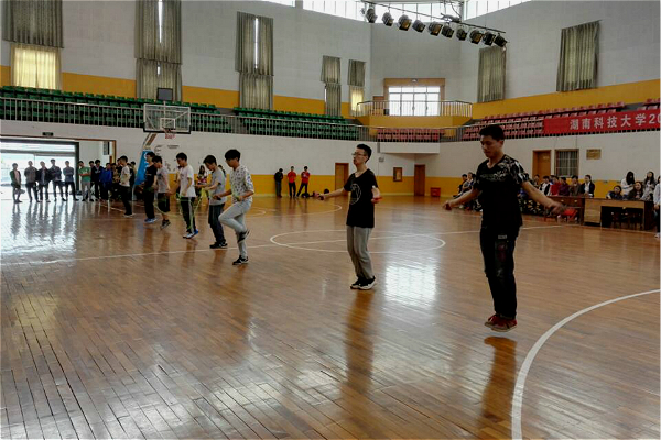 5月8日,公司在北校体育馆内开展2015级年级跳绳比赛。公司2015级全体同学到场,2015级辅导员老师陈苗苗莅临现场指导加油。比赛流程由2015级总支钟理龙主持。