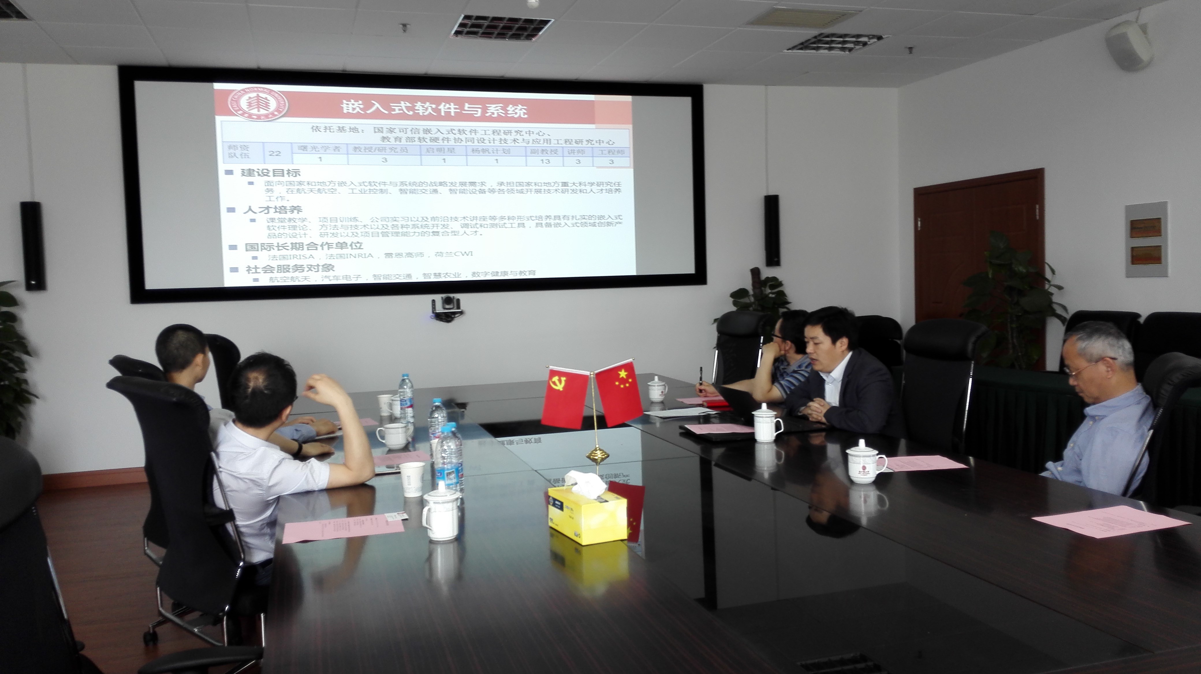5月18日上午,代表团一行来到华东师范大学计算机科学与软件工程公司。该院常务副经理王长波教授就该院的学科现状进行了介绍,副经理姜宁康教授,工程试验教学示范中心副主任金健,公司研究生教务办吴玲颖老师等人就本科人才培养方案、实验室建设、公司产品目标与公司代表团展开了交流讨论。