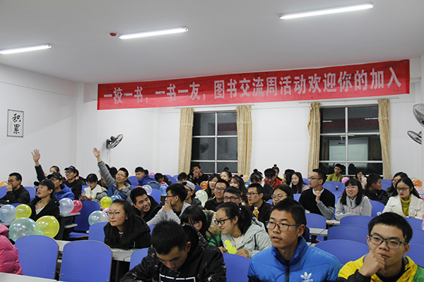 活动开始之前由袁东统为此次宣讲会致辞,他鼓励大家要多读书,读好书,成为一个优秀的读书人。随后主持人宣布读书交流宣讲会正式开始。首先播放了图书交流周的精彩剪影,体现出了科大学子与书为伴,热爱阅读的优秀品质。之后的有奖竞猜环节,充分调动了同学们的积极性,会场气氛十分活跃。会上,公司巨凤同学为爱读书的同学们推荐了一款名为“萝卜书摘”的APP,以提高同学们网上阅读的质量。宣讲会接近尾声,同学们用空白便签写下自己的感悟和书摘以作留念。在同学们积极的参与和饱满的热情中,此次图书交流宣讲会圆满结束。