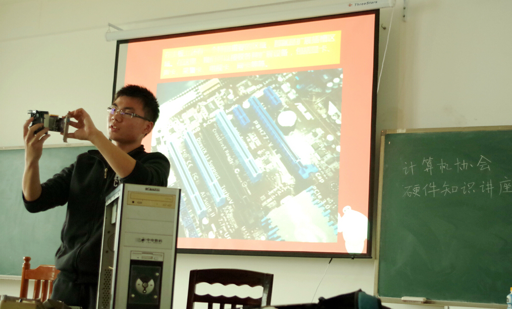 本次讲座主要讲述硬件知识与现场拆装机。张威演示 了Windows系统的安装过程,向大家介绍了计算机各硬件名称及功能,还教授了大家通过各配件来选购台式机的技巧。同时讲述了几种常见的电脑问题,分享计算机基本维护技巧。