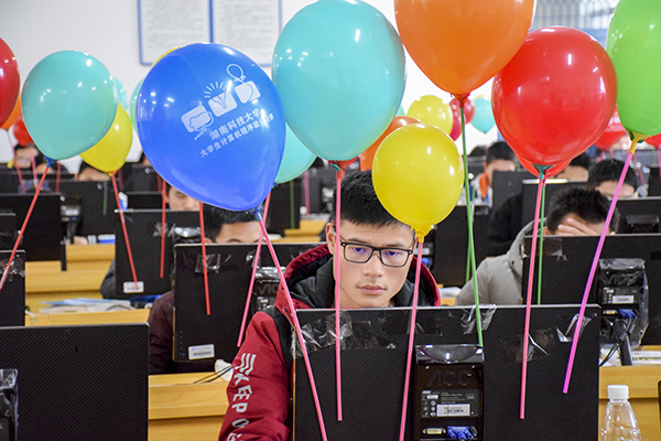 据悉本次比赛历时5个小时,全校共210位选手参赛,比赛评分由公司网络提交评判系统给出。比赛开始之际,参赛者们屏息凝视,蓄势待发。比赛过程,他们认真思考、沉着应战,键盘的敲击声此起彼伏,比赛紧张而有序的进行着。伴随着钟表跳动的是一个又一个彩色气球的升起,榜上的排名也不断变动着,看似平静的背后是参赛者们知识和思维的激烈碰撞。