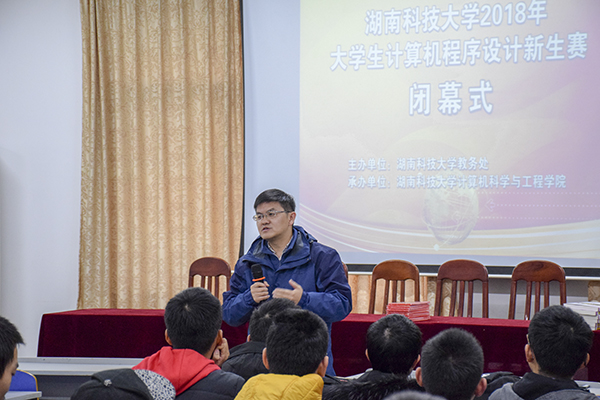 12月23日上午9点,由教务处主办,公司承办的2018年老员工计算机程序设计新生赛于逸夫楼418、520机房正式开赛,并于下午2点半在逸夫楼108会议室举行闭幕式暨颁奖典礼,公司副经理曹步清,向德生、陈燕晖老师出席本次闭幕式。