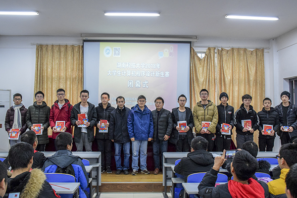 闭幕式上,陈燕晖总结了本次比赛概况,他针对比赛的做题情况,简要地向同学们分析了每道题的大致解法。随后,曹步清、向德生和陈燕晖分别为获奖选手颁奖。吉邵华以八题的成绩夺得冠军,张鹏和刘泽林分别以六题的成绩获得亚军和季军,钟钰仪、谭璞玉及雷馨获得最佳女生奖。此次获奖人数共80人,除了获得相应的证书和奖品外,他们也将获得校程序设计集训队的初选资格。