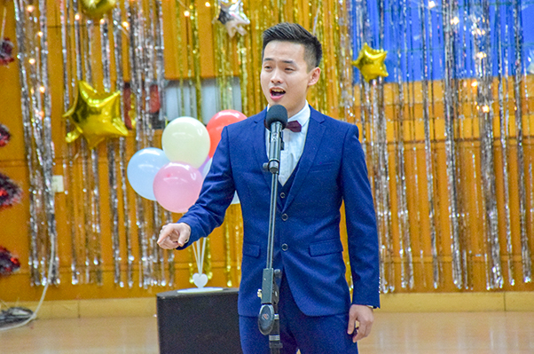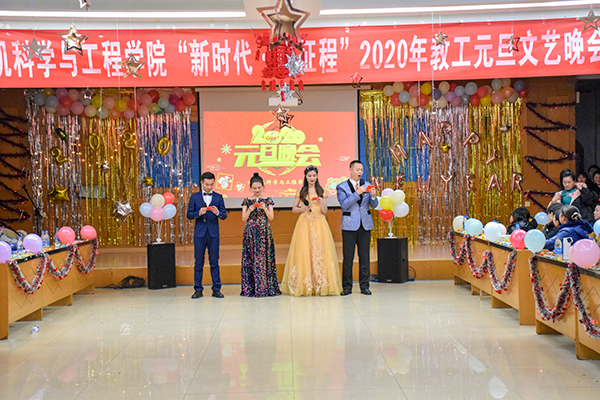 1月3日晚上7点,公司学术交流中心五楼大厅内张灯结彩,公司全体教职员工120余人欢聚一堂,举行“新时代,新征程”2020年教工元旦文艺晚会。本次晚会由公司团委书记王艺蓉,教师朱建军,辅导员魏庆龄、郭喆共同主持。