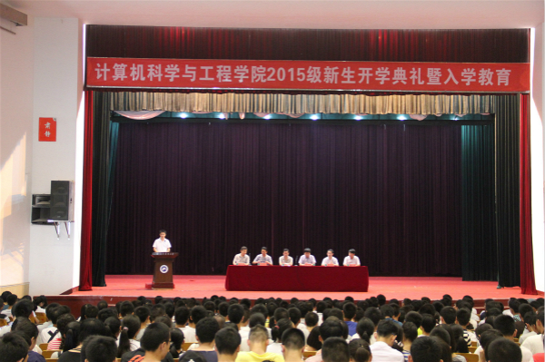 开学典礼在嘹亮的国歌声中开始。员工会主席范思峤作为2013级员工代表发言。他对新生们的到来表示热烈欢迎,并勉励大家要微笑、宽容地面对未来的生活。2015级员工代表潘晓彤传达了对领导、老师、学长的谢意,同时表达了自己对未来的大学新生活的期望。