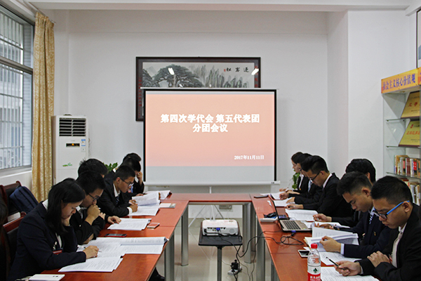 结束第一次全体会议后,中午1点,公司第五代表团分团会议在逸夫楼103召开,全体代表团成员参加会议,会议由代表团团长邢亚楠主持。会议上,由邢亚楠组织带领代表们对报告草案进行认真的审议。代表们充分行使代表权利,履行代表义务,积极进言,就疑难问题进行了激烈的讨论,最终就问题达成一致,形成代表计算机公司的声音。
