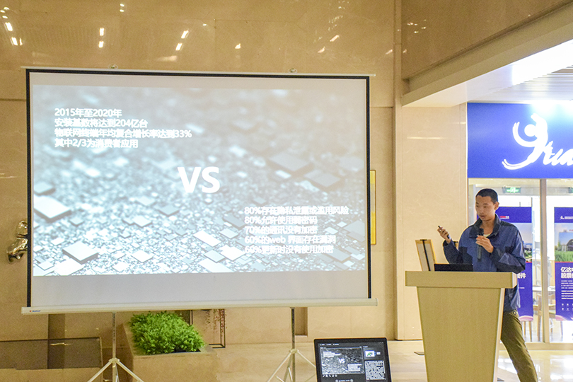此次发布会在上海湖南同时进行,从中午1点半持续到下午5点半,分发布会签到及伴手礼领取、嘉宾发言、产品揭幕、茶歇、嘉宾议题分享以及闭幕与媒体采访六部分。上海会场发言嘉宾为御风维安CEO王骕,由御风维安安全专家邬轶凡为产品揭幕。此次发布会所介绍产品是国内首次融入AI技术,一款专注于为物联网设备研发、制造厂商提供信息安全解决方案的物联网安全产品。发布会上,王骕以社区云下的任意文件下载漏洞利用为例,引出针对云特性的解决方案,并分析其实现机理,引来全场掌声,会场气氛热烈。湖南会场发言嘉宾为御风维安COO王寅,由御风维安首席安全官耿晟昶为产品揭幕。