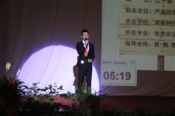 公司学工办主任吴成义、辅导员老师易靓靓、陈苗苗前来现场为其加油。潘亮作为第五名演讲选手,随着一声“开船啦”,潘亮激情的演讲开始了。台下观众高呼着口号“潘亮一出,谁与争锋。ITIT,永争第一”。