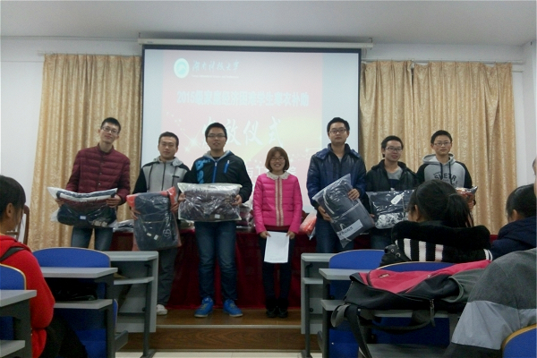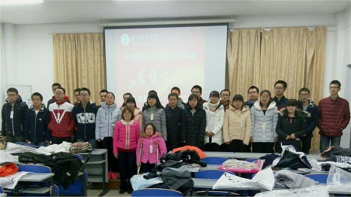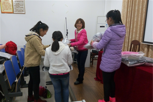 此次寒衣补助发放仪式由2015级辅导员老师吴成义和2015级辅导员老师陈苗苗共同主持,共发放时尚棉衣31件,为31名家庭困难的新生送来了寒冬的温暖。穿衣之时,玻璃女孩廖莎莉受到了周边同学的积极帮助,同学们之间气氛温暖,幸福洋溢。其间,公司党委副书记曾治国也为大家送上了祝福与温暖。据悉,公司此次寒衣补助工作严格按照公司该项工作程序进行,确保补助对象为真正需要的同学。寒衣采购阶段严把质量关,杜绝黑心棉。