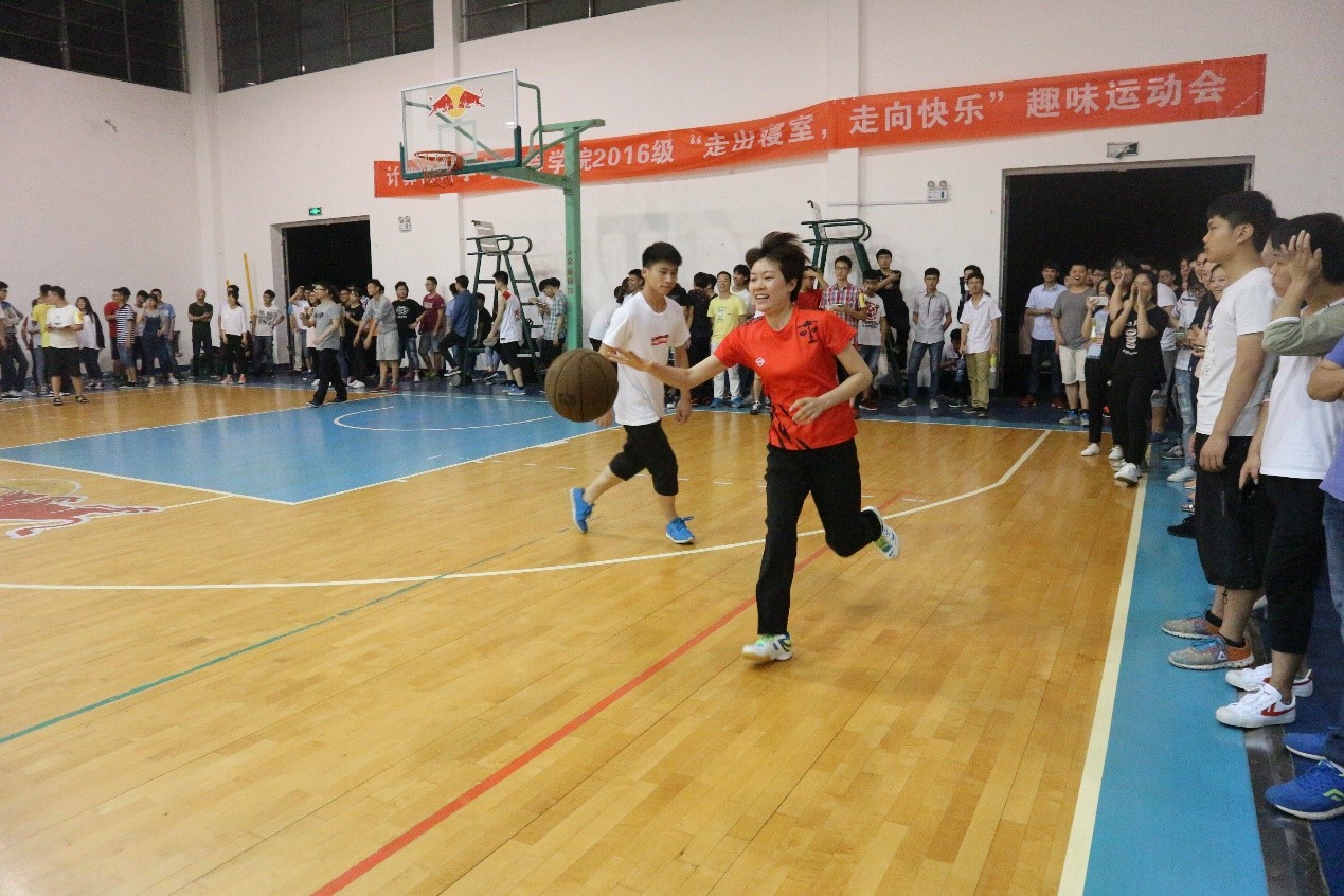 “企鹅漫步”可谓是最让人捧腹大笑的环节了,男生们企鹅状的运球为活动增添了些许滑稽。紧接着来到了女生投篮的环节,那精准度,巾帼不让须眉!