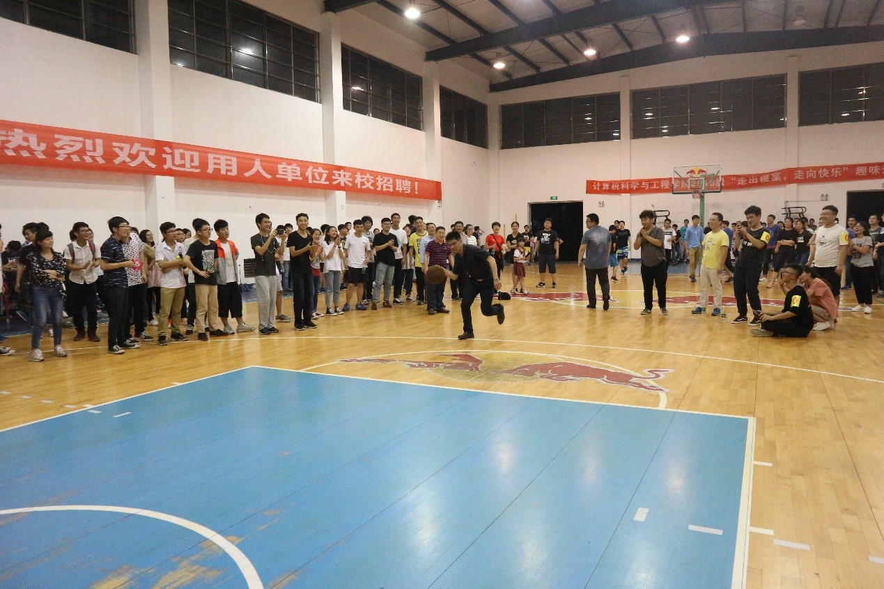 在“功夫篮球”环节中,员工老师齐上阵,打响了趣味运动会的第一炮。