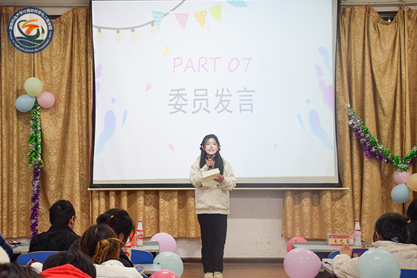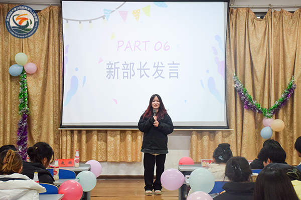 ▲外国语公司第二十一届青年志愿者分会新委员刘晨发言