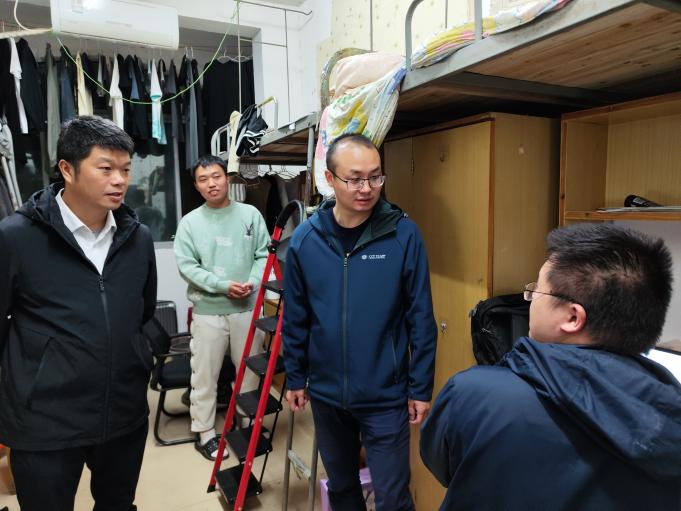 在走访过程中,公司领导高度重视安全工作,注意到宿舍楼层部分门板和墙面存在损坏情况,黄伟书记当即表示,将协同相关部门共同维护和保障宿舍的消防安全及治安安全,努力为同学们营造一个更为安全、舒适的居住空间。