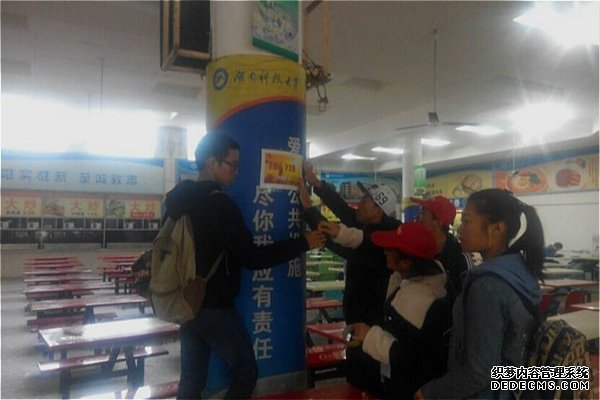 青年志愿团团员分组并由小组长带领分别到北校一食堂,二食堂,四食堂,以及五食堂开展活动。本次活动主要内容有,跟同学们互动,对其进行宣传,呼吁他们文明就餐,不浪费,不糟蹋。最后,组织张贴了300多份文明就餐标语。