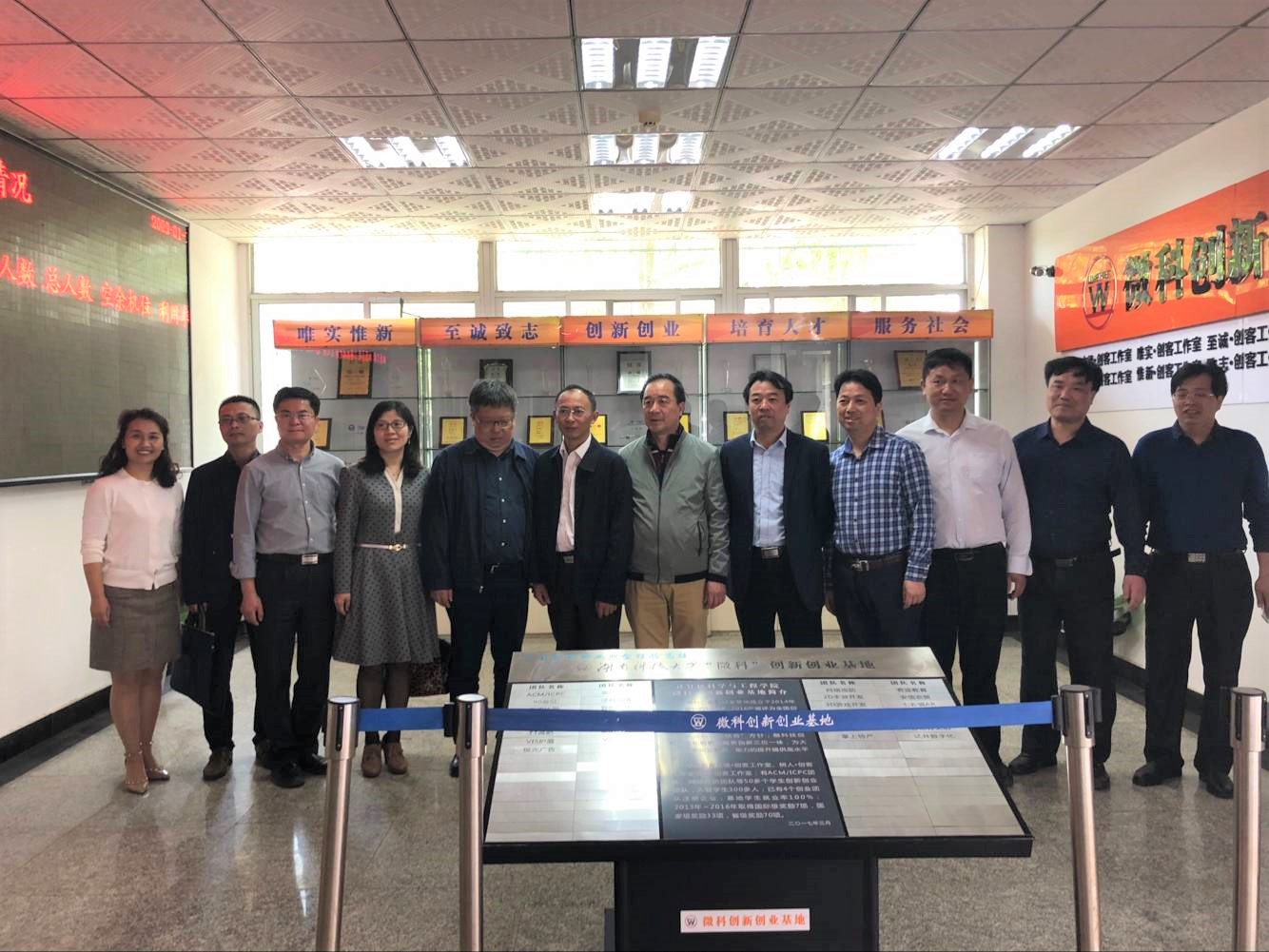 在讲解员的带领下,蔡畅元等人先后参观了公司微科基地的科学技术协会办公室、微科逐梦办公室及"唯实"、"惟新"、"至诚"、"致志"、"立德"五个创客工作室。在了解到"微科"两字所蕴含的意义和各实验室的基本情况后,蔡畅元对公司微科创新创业基地取得的丰硕成果表示充分肯定。最后,蔡畅元一行在公司微科基地前合影留念。