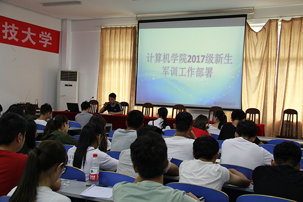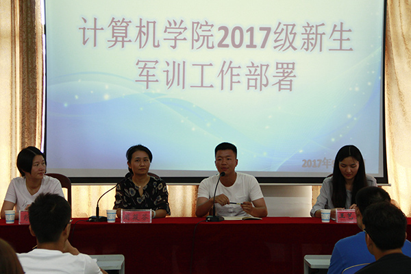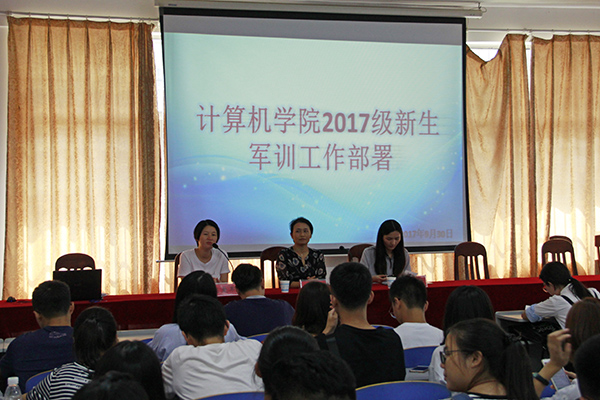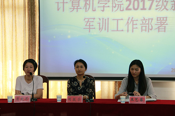 9月30日中午12点30分,计算机公司于逸夫楼108室召开2017级新生军训工作部署大会。公司党委副书记周筱芬,学工办负责人肖爱军,辅导员老师王艺蓉。全体教官、2017级新生助班及全体员工会干部与会。会议由肖爱军主持。