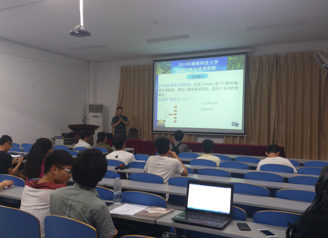 钱鑫同学负责的《基于Hausdorff距离的电路侵权取证系统研究》通过对电子电路以及软件程序的深入研究,在其核心组件上增设隐形水印,极大地方便了软件侵权的验证工作。刘卓旻同学负责的《手机测距软件》则一改往常该类软件高度需要手动测量的缺点,实现了全自动测量距离的效果。此外还有《教育型远程控制管理软件》等作品的竞赛演讲。