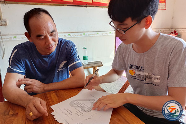 永州市祁阳县合洲村,志愿者正与工作人员完成问卷调查