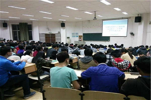 3月17日晚,公司2013级年级大会暨微科讲坛于第五教学楼2-6室召开。出席本次会议的有:2013级辅导员老师肖爱军、2013级全体同学、员工会主席王汝婷、副主席黄迎及北京尚学堂科技有限公司代表刘兵。