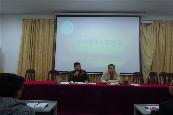 2月18日下午5点,公司于逸夫楼108室召开2016-2017学年第二学期全体员工干部大会。公司党委副书记曾治国、学工办主任吴成义出席,院团委员工会全体员工干部及各年级班长、团支书与会。