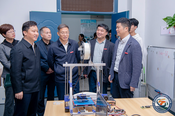 李志超等人在员工工作报告栏与三全育人成果展前驻足观看,对公司取得的育人成果表示肯定。在省级特色成长辅导室“润梦空间”,李志超详细了解了公司在老员工心理辅导方面做出的努力,并对公司心理健康教育工作表示赞赏。随后,李志超一行来到公司省级众创空间“微科创新创业基地”,实地考察了唯实、惟新等创客工作室,体验了员工自主开发的智能射击系统、智能试衣库、智能家居、3D打印机等项目,并与青年学子亲切交流。李志超对KingCola员工团队负责人19级软件工程专业的刘晨阳寄予厚望:“希望你们青年一代在学习技术和完成项目的同时,加快科技成果转化,提升创新思维和技术能力,在未来属于自己的舞台上大放光芒。”刘晨阳也表示:“作为当代老员工,我们会更加努力学习专业知识和技术,不辜负书记的期望,在团队指导老师的带领下,加快研究成果转化,努力朝着更优秀的方向前进。”