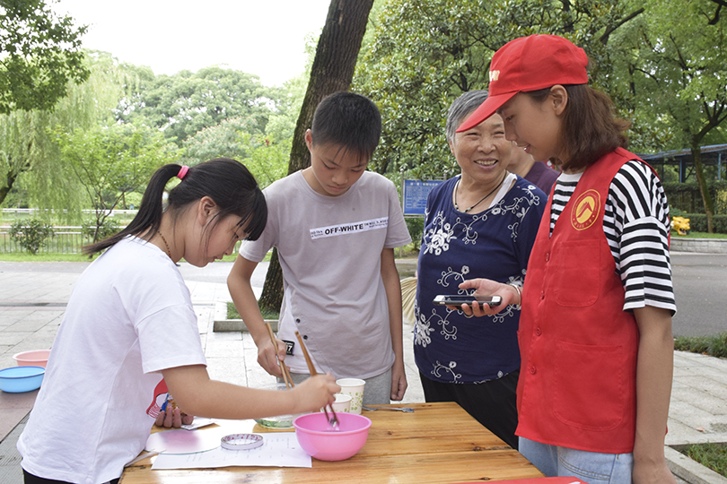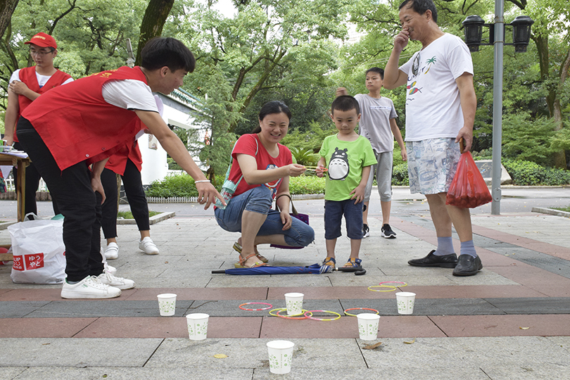 同时,为了让居民们明白陪伴孩子是减少他们对网络依赖的前提,志愿者在和平公园摆点开展亲子互动游戏,周围居民也纷纷带领着孩子们参与其中。对于游戏奖品,家长们感受更多的是与孩子们共同游戏收获快乐的过程。参与游戏的家长说道:“通过这几个小游戏,提高我和孩子间的联系,也减少了他花费在网络上的时间,以后会尽量多抽出时间带孩子走出家门。”