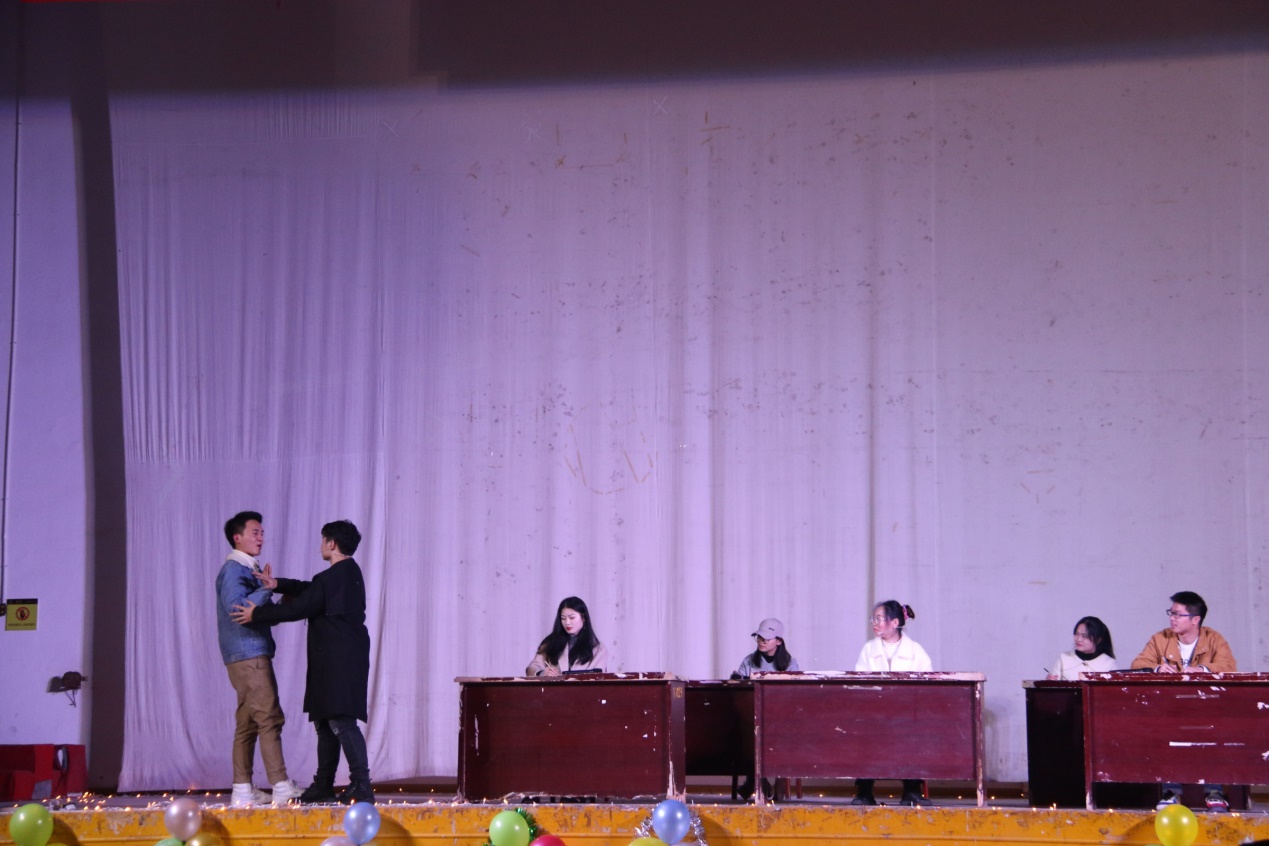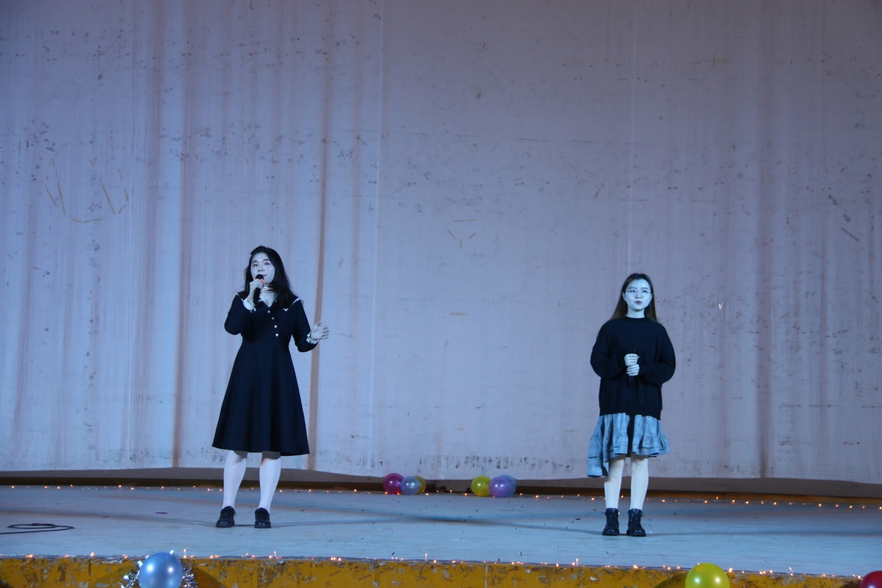 晚会伊始,来自四个公司的四位主持人进行开幕致辞,他们对本次联谊会的筹备和节目安排进行了简要介绍,并对所有到来的师生表示热烈欢迎。此次晚会分为节目演出和游戏互动两大环节。