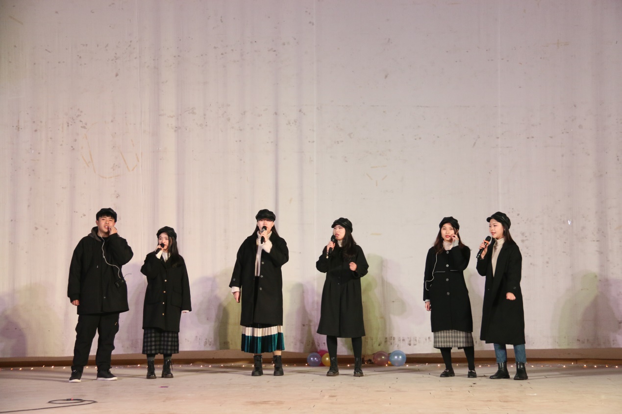 《Everybody》由外国语公司的两位同学倾情演唱,歌声清新悠扬,传达出追随心声、尽力去爱与被爱的情感。“Just let love love love began……”台下的同学们随着歌曲合唱,热情十分高涨。