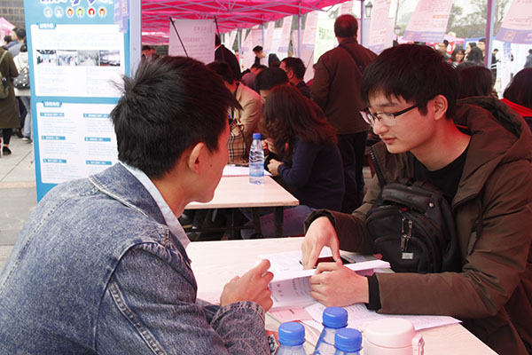 3月17日上午,yl23455永利集团2018年春季校园招聘会在月湖广场举行。此次招聘会有来自省内外的445家用人单位来校招贤纳士,提供近两万个岗位,吸引了大批准毕业生前往求职。公司党委副书记周筱芬、2014级辅导员曹睿卓、分管就业辅导员苏俊铭也到招聘会场同就业部负责人进行了交流,了解用人单位和公司准毕业生的面试情况。同时公司为了给到场应聘的毕业生提供便利服务,还专门设立了“计算机公司服务台”,帮助毕业生们更好地了解招聘信息。
