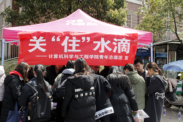 3月22日中午,公司青年志愿团在八区五食堂门口和美食广场前坪开展了“关"住"水滴”摆点系列活动。