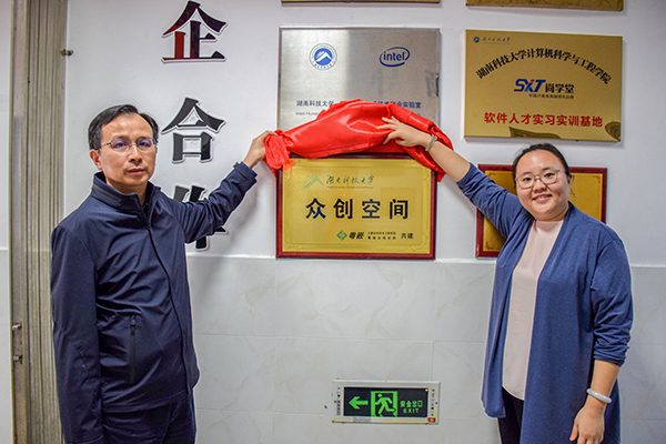 4月22日下午3点,公司于逸夫楼“至诚”创客工作室举行了与广州粤嵌通信科技股份有限公司湖南分公司共建众创空间的揭牌仪式。公司人才招聘处副处长李友桥,公司经理刘建勋,党委书记刘红阳,副书记周筱芬,物联网工程系主任王晓亮,广州粤嵌通信科技股份有限公司总经理朱容及渠道负责人焦阳出席活动。
