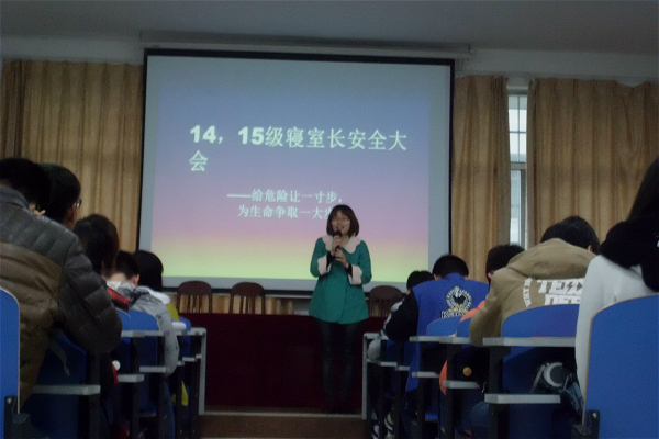 3月22日12点,公司在逸夫楼108室召开全院2014级和2015级寝室长大会。2015级辅导员老师陈苗苗,团委员工会副主席赵毅峰,宿管部部长谢兴泽,副部黎臻、李冬琴、王佳鑫,徐云龙,以及2014、2015级全体寝室长出席本次会议。此次会议由宿管部委员邓汶主持。