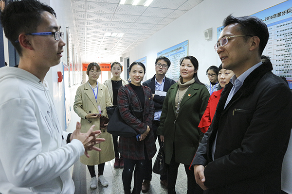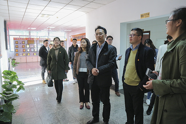 3月23日下午5点,湘潭团市委书记王利、共青团市委副书记田艳、学少部部长彭俊一行莅临公司进行共青团青年引领思想工作。在校团委书记马缤辉、校团委副书记王艳、校团委老师以及公司党委副书记、团委书记、辅导员老师的陪同下对公司各项科研成果和员工工作情况进行深入了解。