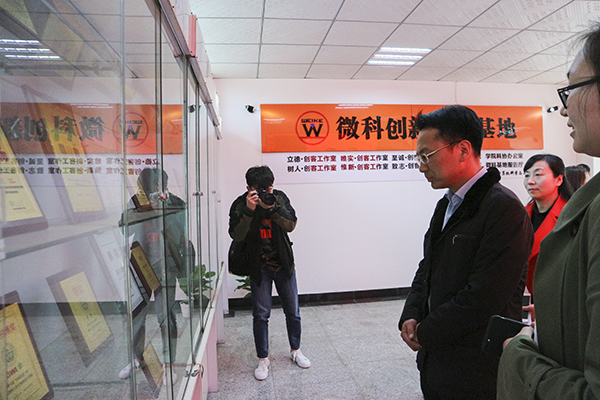 王利一行来到公司微科创新创业基地,先后参观了公司科学技术协会办公室、微科逐梦工作室及“唯实”、“惟新”、“至诚”、“致志”、“立德”五个创客工作室,同时详细地询问了公司员工创新创业团队和团队考核办法。在此期间,王利与公司优秀员工王骕进行了有关创业项目、运营公司所在地、公司规模和团队的交流,充分肯定了王骕的创业成果以及专业能力。之后,王利一行来到公司员工第二课堂风采展示长廊,浏览了公司员工丰富多彩的课余生活剪影。最后,王利一行走访了公司朝阳党建办公室、润梦空间心理成长辅导室等特色项目办公室。至此,本次视察调研工作圆满结束。