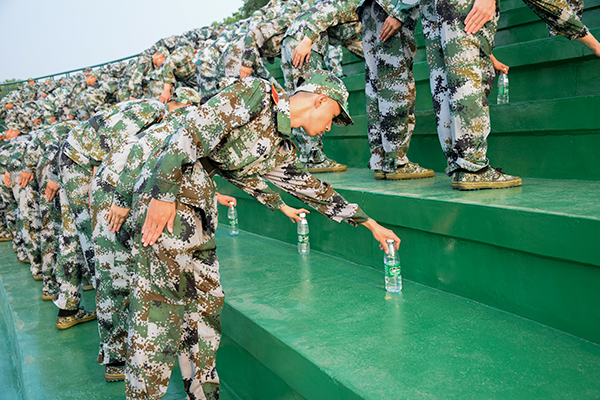 整齐的队列,挺拔的军姿,体能消耗是永恒的主题。纵然白天体能训练,晚上内务卫生,但他们依旧精神饱满,充满朝气。公司计算机科学与技术一班的钟可毅在纸上记录道:我熟知完成军训任务需要进行日复一日的高强度训练,这一过程诚然是又苦又累的。那么首先我们就需要在心中认同军训,树立必胜的意志。朱熹曾言“立志不坚,终不济事”。如若心无所依,心中的激情就难以燃烧持久。自从我们第一次穿上迷彩服开始,诚应立志澄心,放下心中不安与畏惧,就像科大校训中一言“至诚致志”,让军训的激情肆意燃烧。军训虽与成为军人有本质上的区别,却给了我一次体验军旅生活的最好机会,这真的弥足珍贵。